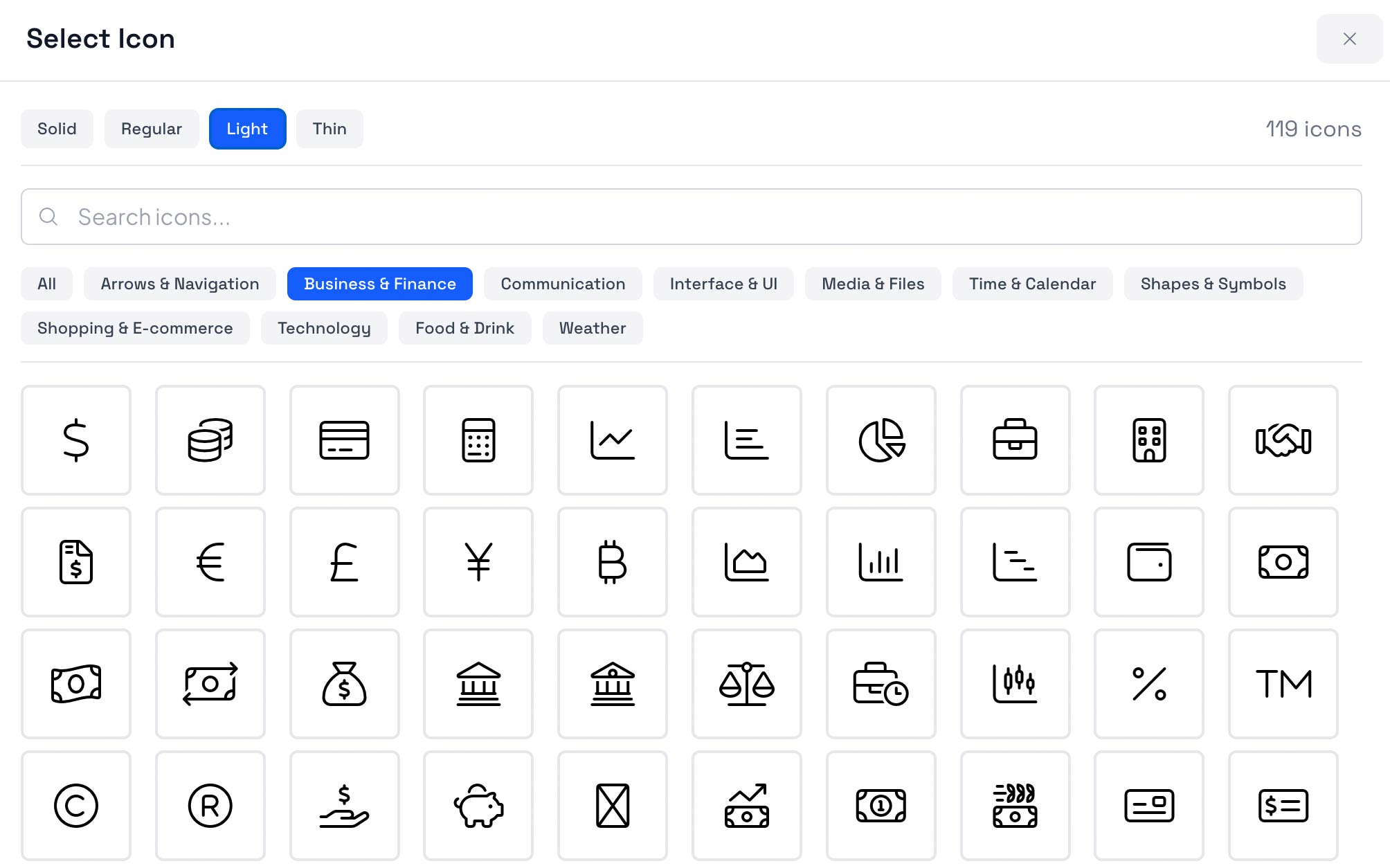 Enhance your proposals with icons. Choose from a library of icons to match your brand and improve visual communication.